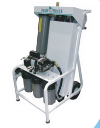 RO A La Kart The RO A La Kart from Pure Rinse Systems is a complete Reverse Osmosis (RO) and Deionization (DI) system in one. The built-in DI cartridge further purifies the RO water for use in the most demanding spot-free cleaning applications. Maintenance is effortless with easy access to every major component of the system. Designed to move easily from job site to job site, it's frame is only 27" wide and fits through the smallest doorways. The large pneumatic wheels allow easy movement and loading/unloading. For storage options, for unit can be stowed either horizontally or vertically. Also, the top control panel puts the controls within easy reach an dview with panel-mounted pressure regulator, pressure gauges and water connections. The lower tray comes in handly for tool, hose and cord storage. Use the RO A La Kart with the Pure Rinse Water Wagon for an outstadning flexible and complete system solution. Download RO A La Kart Product Bulletin PDF |