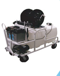RO Water Wagon The RO Water Wagon from Pure Rinse Systems is a self-contained protable water storage and distribution systems. The tank holds 50 gallons of water; the distribution system can provide flow to multiple applications and allows hose lengths up to 600 feet. The cart is only 24" wide and will fit through strandard doorways. The optional auto-fill switch can be used to power and RO system and shut it down upon achieving system water capacity for total system independence. The optional 12 VDC power system allows remote operation. Download RO Water Wagon Product Bulletin PDF |